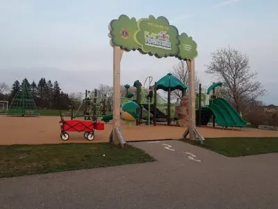 The dog park includes accessible paths, a controlled entrance, waste disposal unit and accompanying parking lot. Please note that the park is used at the owner's risk.